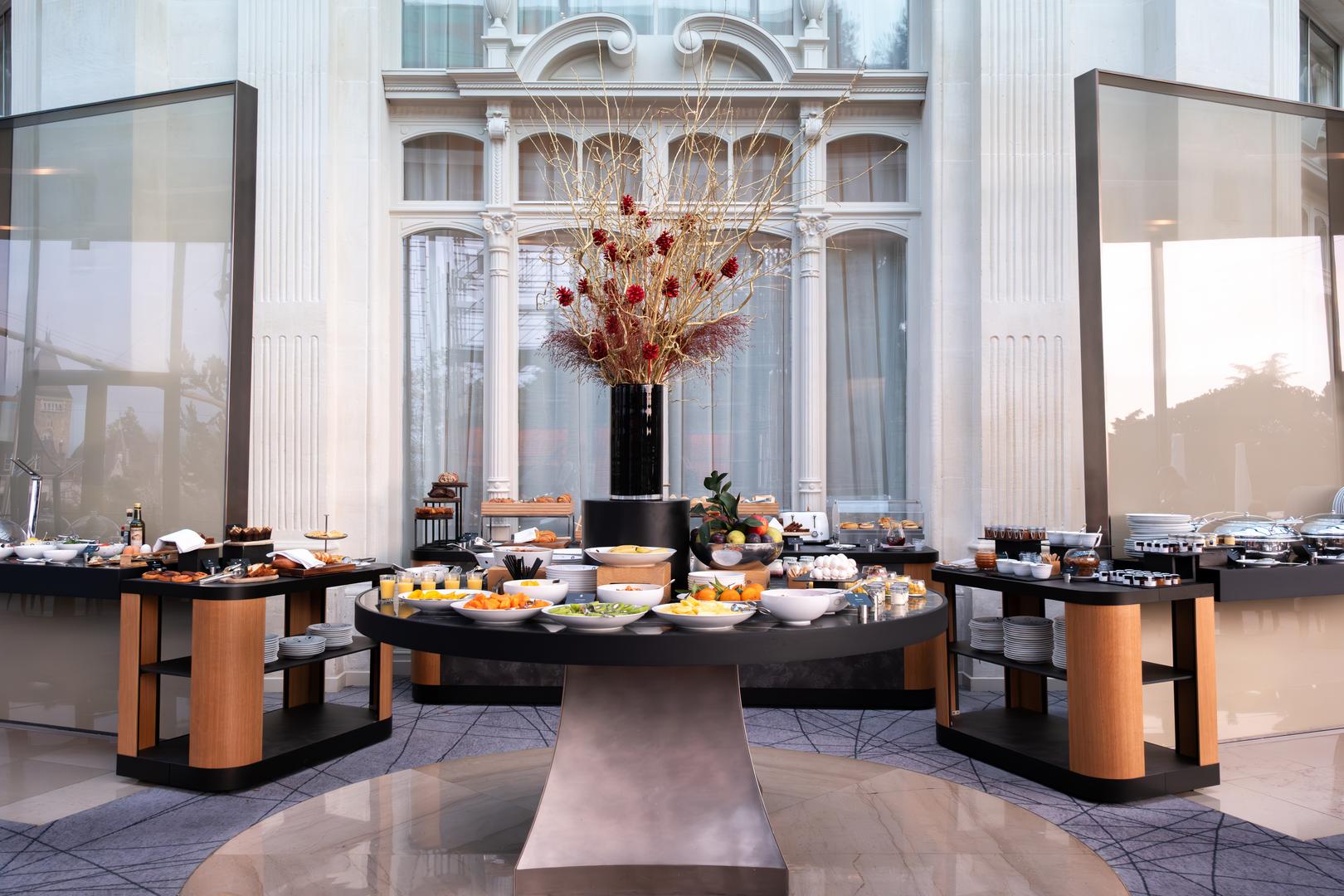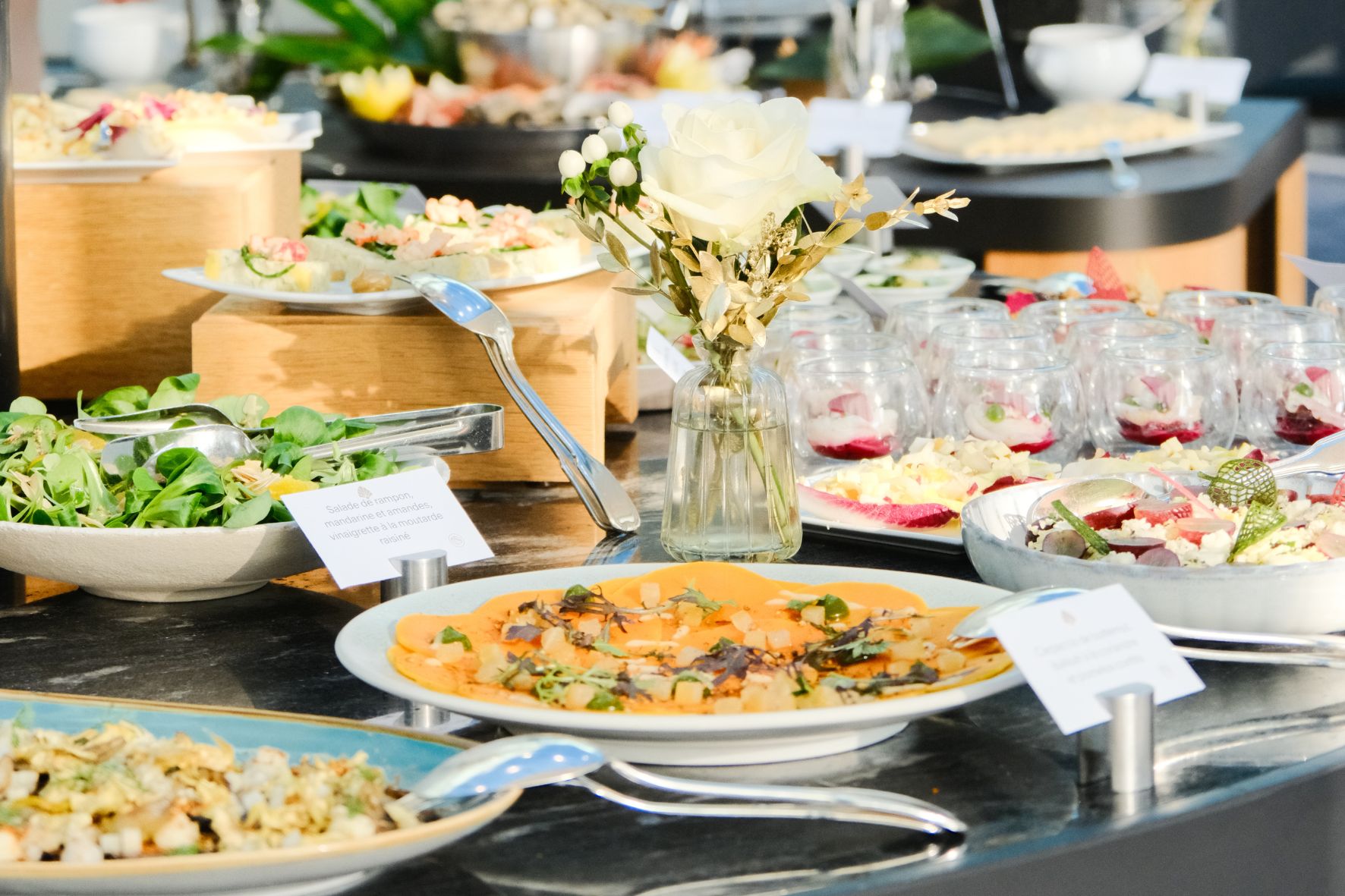 Le buffet propose une large sélection de mets chauds et froids, ainsi que des produits locaux et de saison, afin de vous offrir une expérience gastronomique unique.